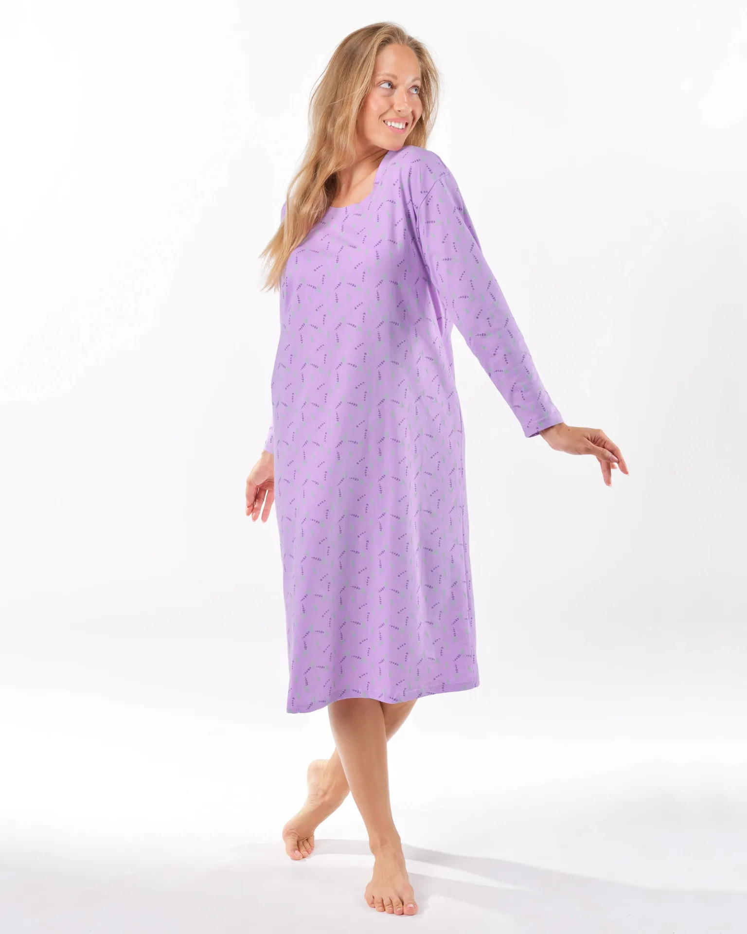 Základem kvalitního spánku je vaše pohodlí, ke kterému vám pomůže i pohodlné noční prádlo. Naše dámská noční košilka s dlouhým rukávem je ideální volbou pro každou milovnici volných střihů a kvalitních materiálů. Noční košilka je dlouhá, zdobí ji potisk s levandulemi, nikde neškrtí.