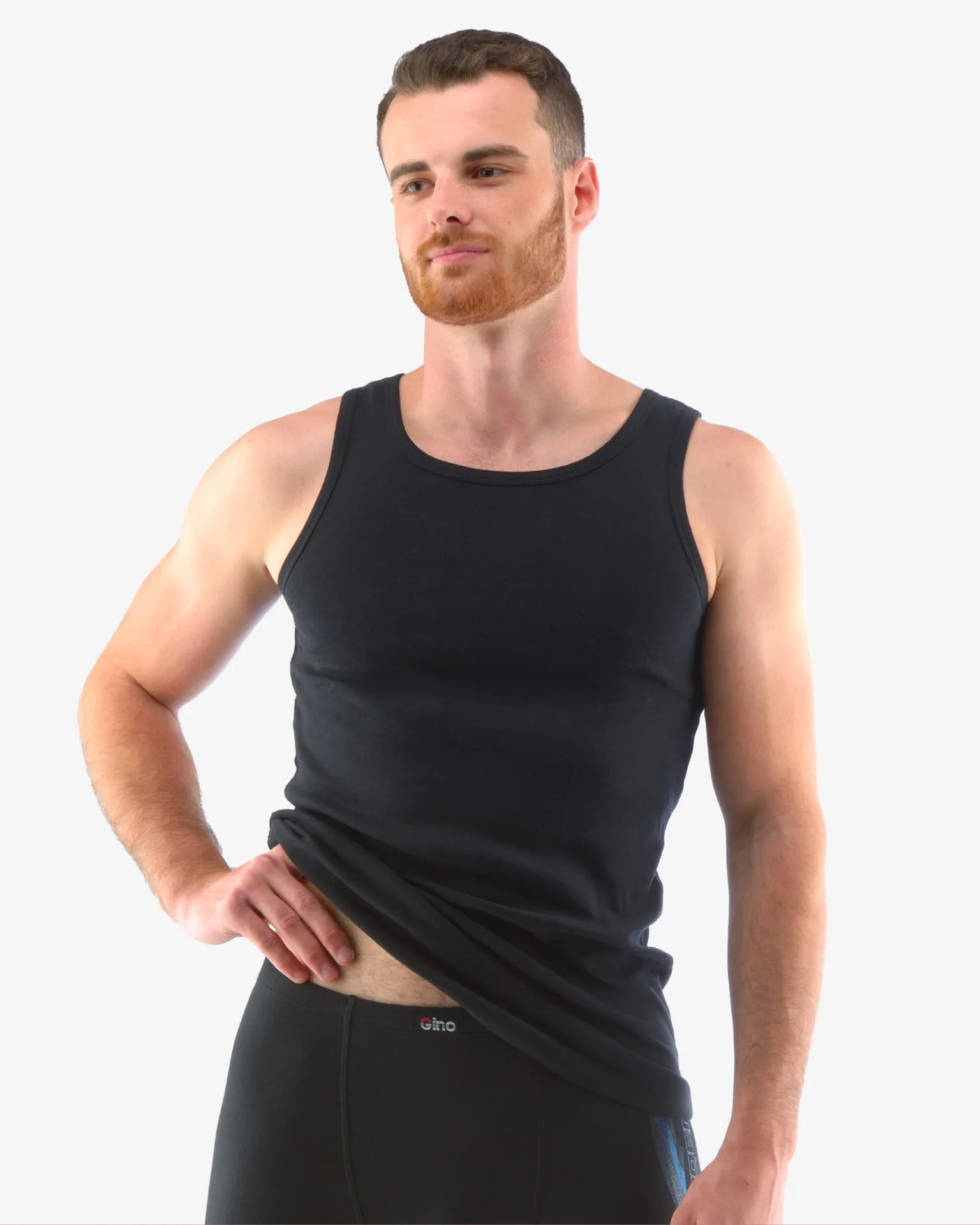 Tílko se širšími ramínky z žebrového úpletu. Jedná se o pánské šité prádlo. Průramky a průkrčník jsou začištěny lemovacími proužky. Nátělník je jednobarevný. Použitý jemný žebrový úplet je pružný a velmi příjemný na nošení.